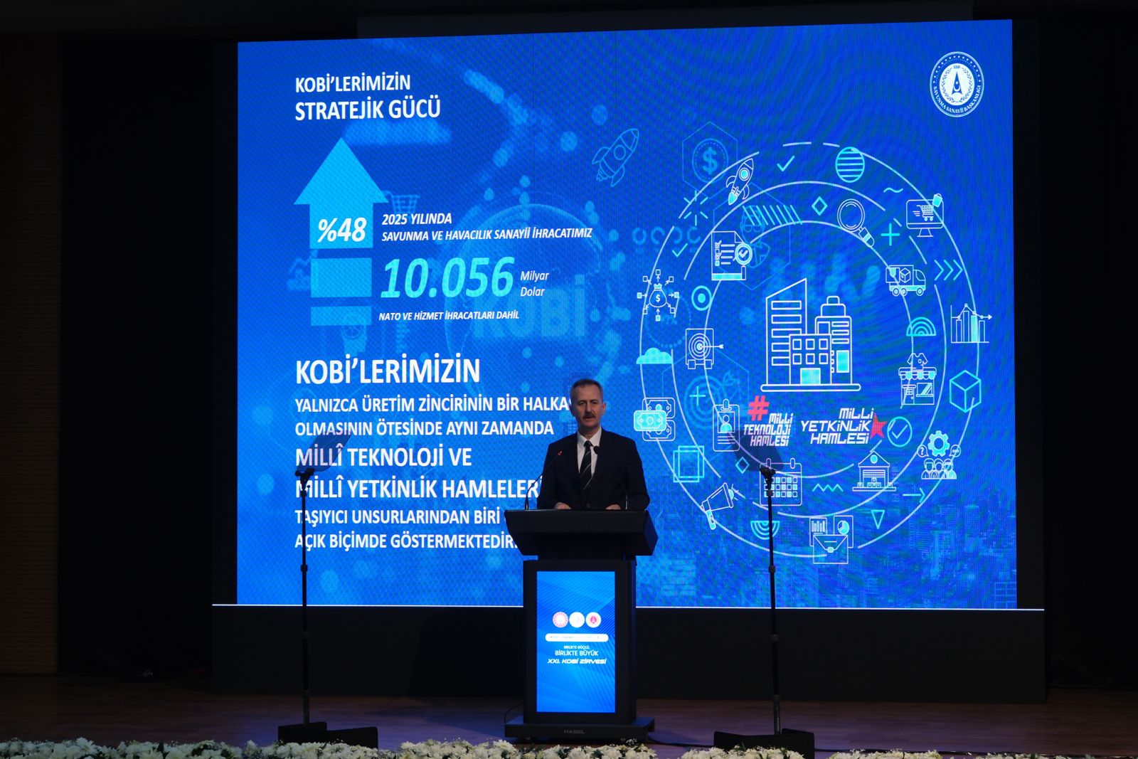 T.C. Sanayi ve Teknoloji Bakanı Mehmet Fatih Kacır, “Savunma sanayimizin bugün sahip olduğu üretim çevikliğinde, teknolojik derinlikte ve ihracat performansında; yenilikçi çözümler geliştiren, sahanın ihtiyaçlarını doğru analiz eden KOBİ’lerimiz çok önemli bir pay sahibi. Ana yüklenici firmalarımızın KOBİ’lerimizle çok daha yakın, çok daha derinlikli ve uzun soluklu iş birlikleri kurmalarını bekliyoruz.” Dedi Türkiye’nin savunma sanayiinde son yıllarda kaydettiği gelişime dikkat çekerek, “Yerli ürünlerin savunma tedarikimizdeki payını, 23 yıllık süreçte yüzde 20’lerden yüzde